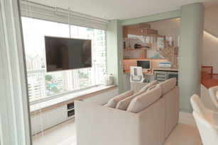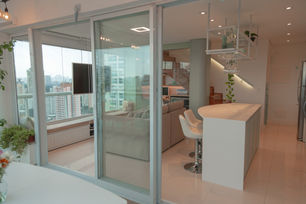 - A varanda integrada com a porta mão amiga, permite amplitude no espaço e modernidade;