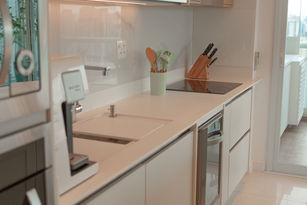 - A utilização do Corian nas bancadas nos permite desenvolver peças arredondadas e longilíneas sem emendas;