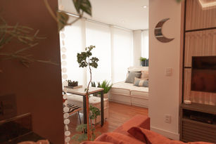 Esse projeto foi desenvolvido para uma cliente com bastante personalidade. Ela nos pediu um ambiente descontraído e com tons mais forte. Dentre os pedidos, alguns foram: futton na varanda, neon na sala e um sofá confortável para receber amigos.